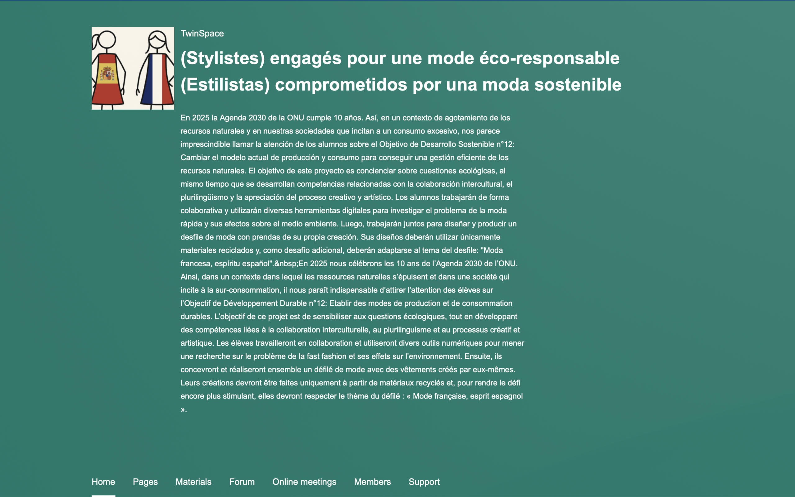 El Twinspace oficial del Proyecto. Un TwinSpace es la plataforma digital segura de