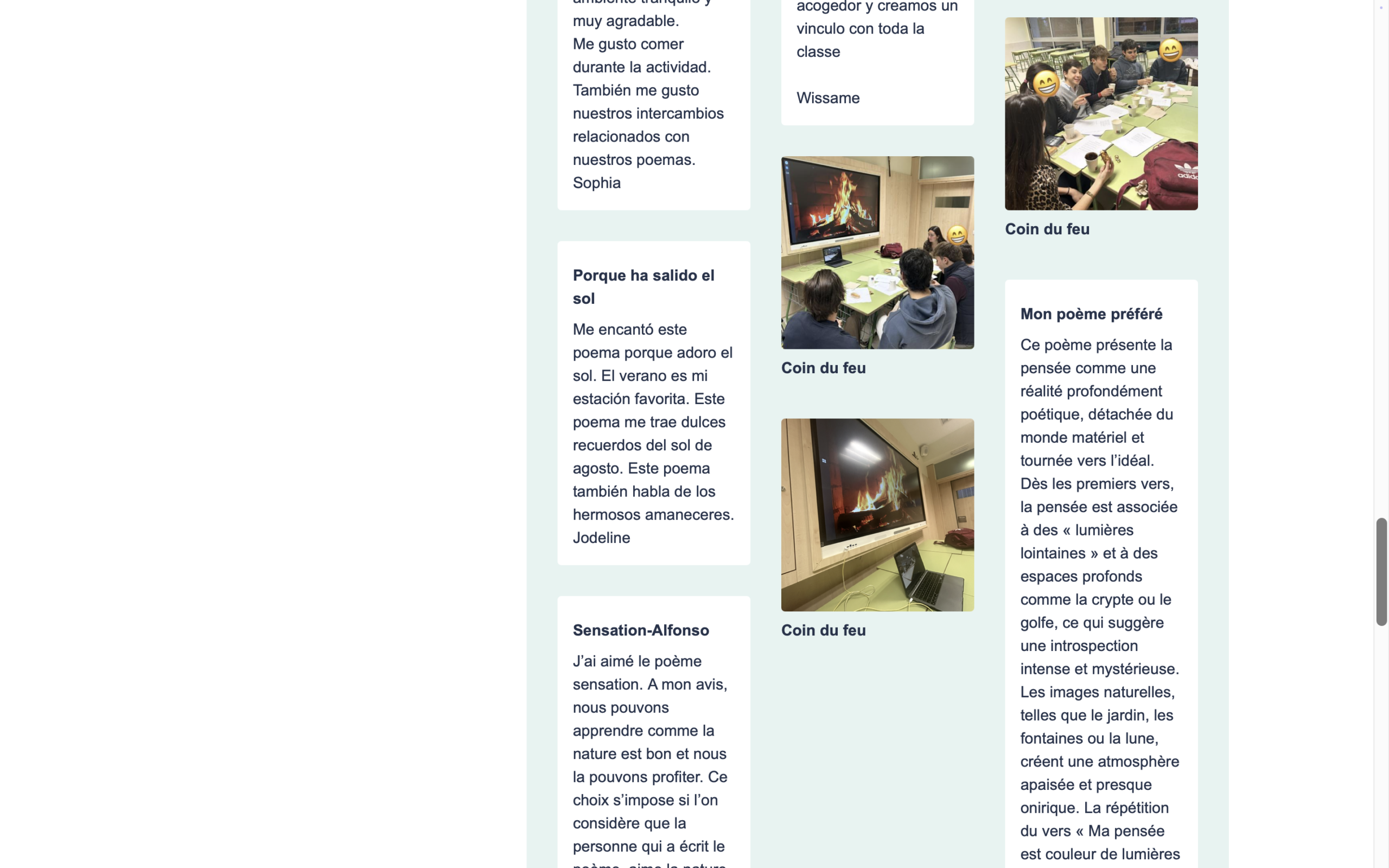 compartida de textos literarios franceses y españoles sobre la naturaleza au coin du feu (al
