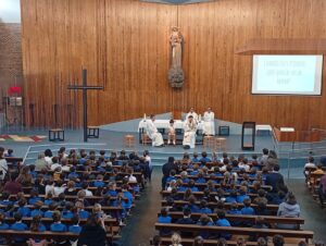 A lo largo del día, el Cardenal P. Cobo se reunió con la comunidad de jesuitas, el equipo directivo, los colaboradores de pastoral y representantes de la Asociación de Padres de Alumnos, de la Fundación Pastrana, de la Asociación de Antiguos Alumnos y de la Comunidad Cristiana del colegio. Su presencia fue un signo de cercanía y comunión para todas las personas que forman parte del Recuerdo.