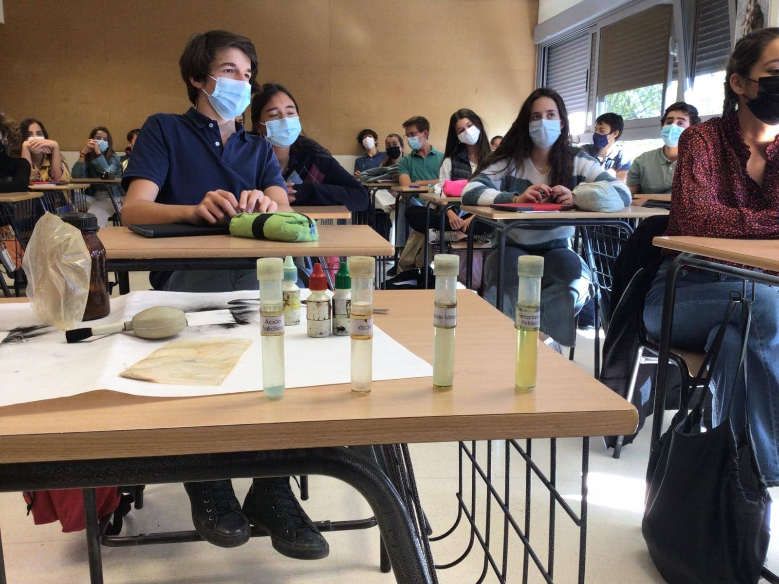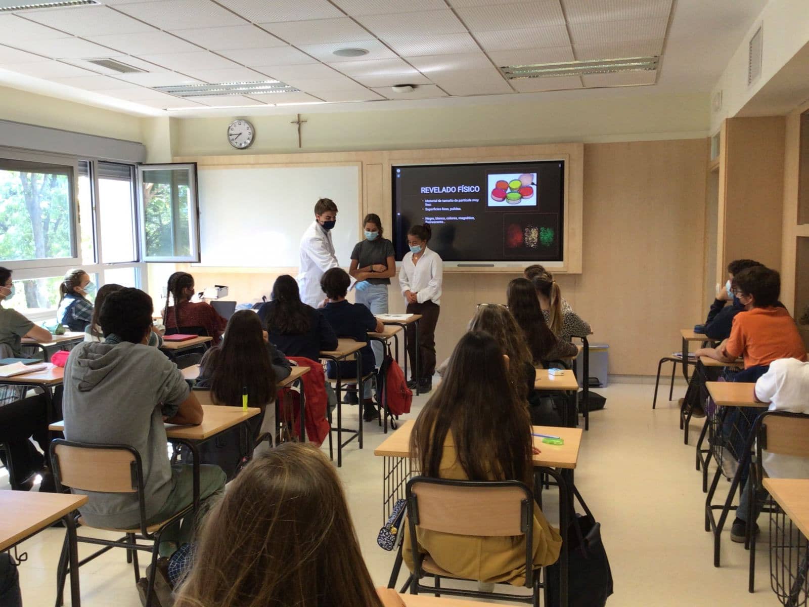 El pasado miércoles 13 de octubre, vino al colegio de Nuestra Señora del Recuerdo D. Santiago Caireta Serra, químico de la Universidad de Navarra, a hablarnos a algunas clases de primero de bachillerato sobre la CSI (Crime Scene Investigation), traducido al español como la investigación de escenas del crimen. Nos enseñaron muchas formas de sacar huellas dactilares, detectar si una sustancia es sangre o no, y algunas pruebas para detectar el uso de drogas. Fue una experiencia que todos agradecemos mucho y que a todos nos pareció muy interesante.